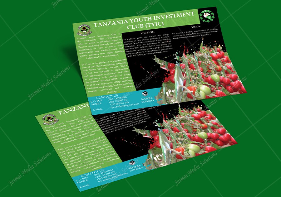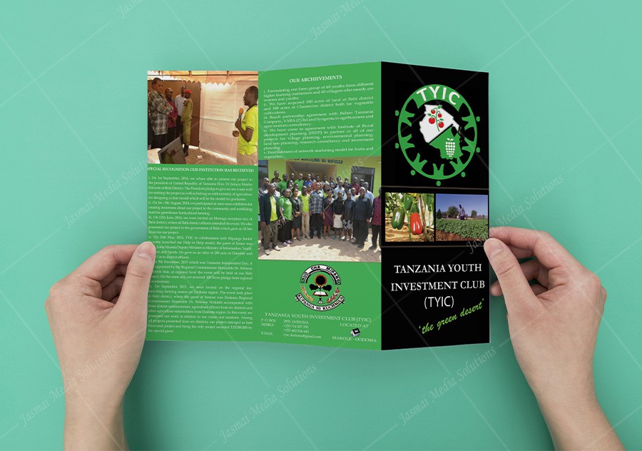 Tanzania youth Investment Club (TYIC) Dodoma Brochure Designing & Printing at Jasmai Media Solutions