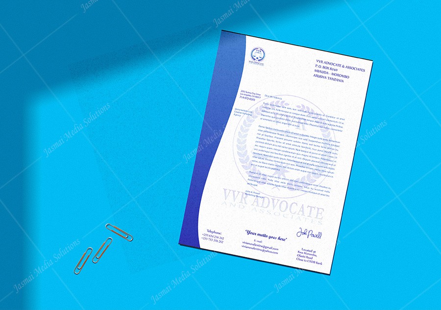 VVR Advocates Arusha Letterheads Designing & Printing at Jasmai Media Solutions